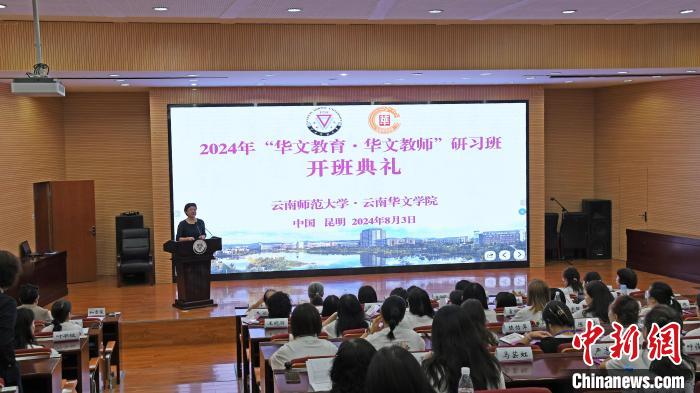 中新网昆明8月3日电 记者 缪超 2024年“华文教育·华文教师”研习班3日在云南师范大学开班。来自五大洲22国61所学校的81名校长、教师齐聚云南昆明,进行为期14天的学习培训。