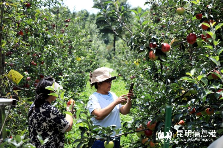 8月2日,富民县举办“品出富民”农文旅促消费推广季大营街道苹果推广暨小水井苗族花山乡村旅游文化季活动。在大秀山精品苹果示范展示基地,沉甸甸的果子压弯枝头,不少游客慕名而来采摘品尝新鲜的果子,大家边采摘边品尝,还不忘拍照留念。“富民大秀山苹果确实不错,我至少要带三箱苹果回家。”广西游客李先生说。