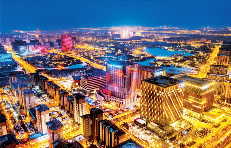 设立雄安新区,是以习近平同志为核心的党中央高举新时代改革开放旗帜作出的重大战略举措。图为2024年2月7日雄安新区容东片区夜晚景象。雄安新区宣传网信局供图 李达/摄