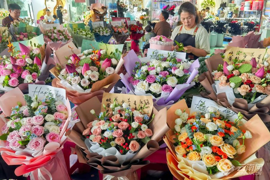 人头攒动的斗南花花世界内,一束束玫瑰竞相绽放,营造出甜蜜浪漫的节日氛围。花店老板抢抓“甜蜜商机”,推出包装精美的节日花束。前来购买鲜花的市民与游客络绎不绝,纷纷订购颜值高、寓意好的花束,通过香气四溢的鲜花传递爱意。(云南网 记者张琦敏 实习生吴美燕 庞坚)