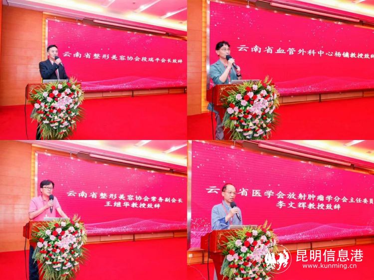 云南省整形美容协会段瑞平会长、云南省血管外科中心杨镛教授、云南省整形美容协会常务副会长王继华教授、云南省医学会放射肿瘤学分会主任委员李文辉教授纷纷为本次大会致辞,对云南省整形美容协会微创与介入分会成立表示祝贺,对各位当选人员给予肯定和期望。