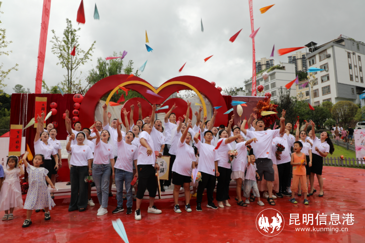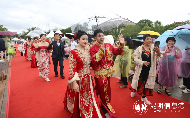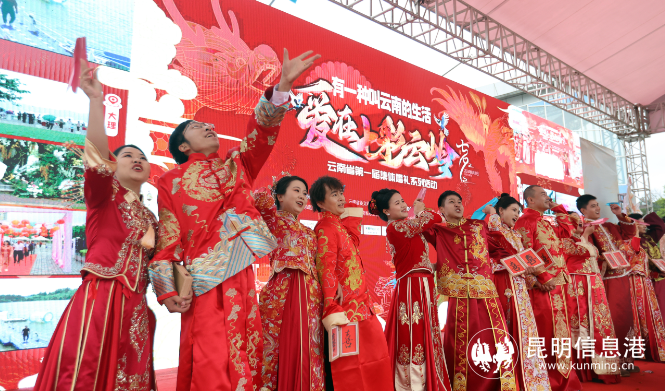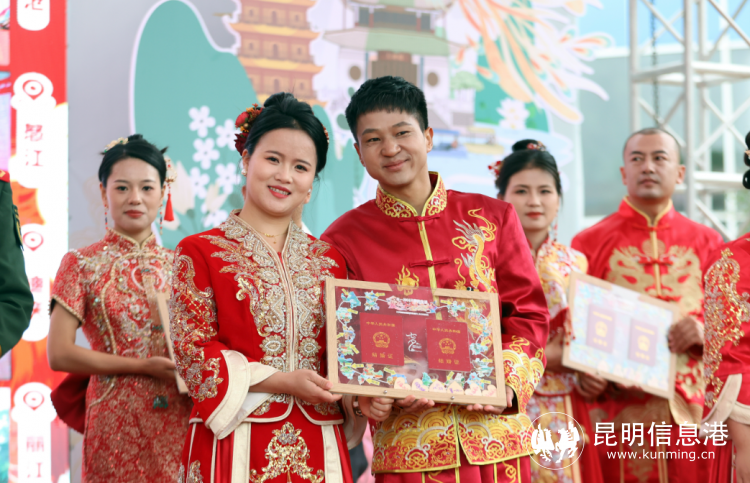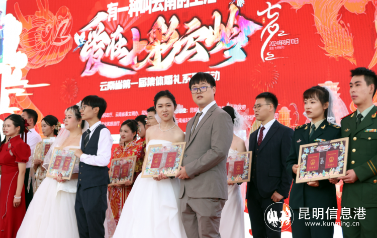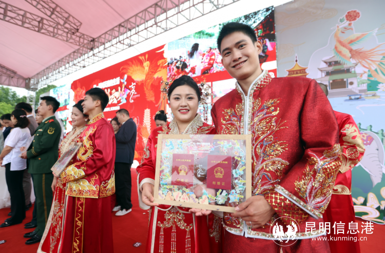 昆明主会场活动由省民政厅、省委文明办、昆明市政府主办。当日,100对新人走上红毯,参加集体颁证仪式。部分新人还身着中式服装,体验三拜礼、结发礼等中式婚俗,并获赠由书法家手写的“百喜图”。新人代表宣读了倡议书,倡导婚事简办、新办、雅办,营造文明新风尚。
