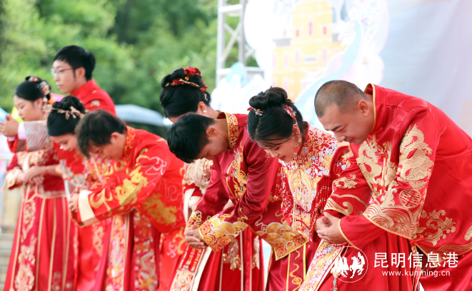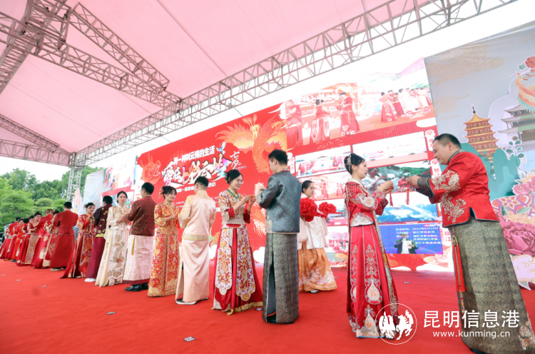 昆明信息港讯 8月10日,适逢“七夕”“有一种叫云南的生活·爱在七彩云岭”,云南省第一届集体婚礼系列活动,在16州(市)129个县(市、区)同步举行。全省1409对新人,在云岭美景中喜结连理,共赴浪漫之约。