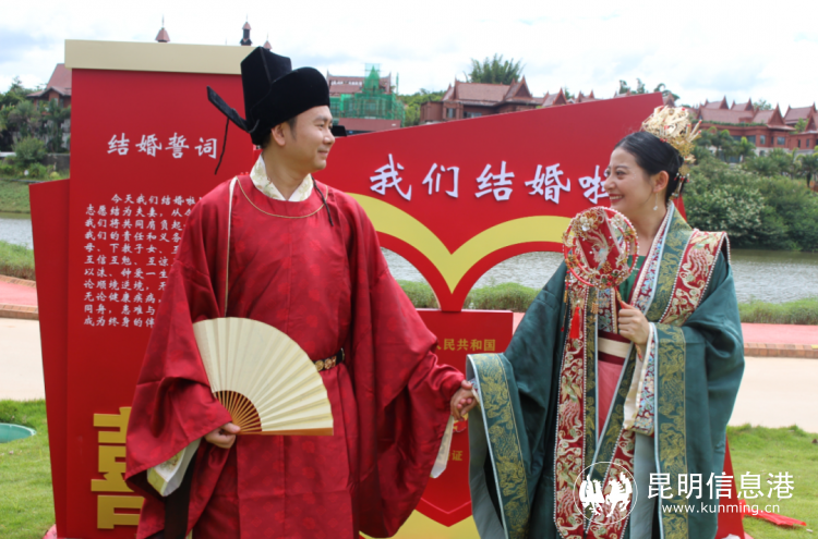 在洱海畔的大理海舌公园、哈尼梯田旁的哈尼小镇景区、正对着梅里雪山的飞来寺景区、充满历史底蕴的普洱茶马古城……全省各地民政局牵头举办了集体颁证、集体宣誓、传统婚俗体验、手写寄语、文艺展演、民俗展示等特色活动,一些地区还邀请金婚夫妇分享幸福故事、家风故事,倡导文明婚俗礼仪、文明婚姻价值观,传承弘扬中华优秀传统文化。