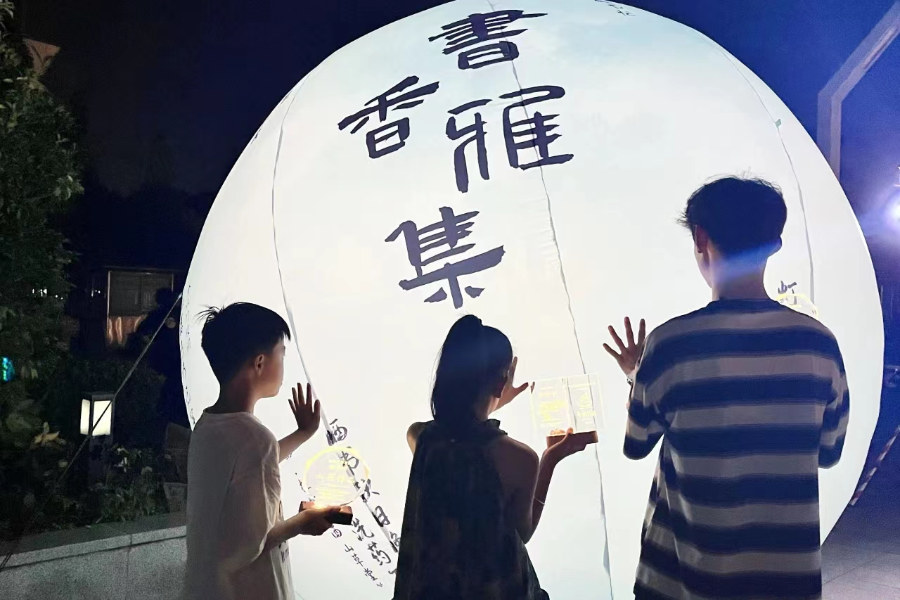 当天的书香雅集亦汇聚了文商旅多业态。图书展售区,新华书店、朵云书院、大隐书局等书店的各类书籍琳琅满目,吸引市民驻足翻阅;文创产品区,金山农民画衍生品、纸观堂龙麟卷手帐等创意无限,展示了文化周边的独特魅力;非遗体验区版画拓印、茶艺等互动,让市民游客直观感受传统技艺的文化魅力;书籍交换区,小队组、家庭组孩童热情高涨,共享阅读的快乐;合影打卡区,留下了人们欢快的身影。