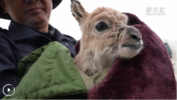 这时,可可西里森林公安局辅警尼玛扎西接过了多结仁欠怀里的小藏羚羊。小藏羚羊浑身湿漉漉的,不停地发抖。尼玛扎西随即脱下自己的衣服,一边给小藏羚羊擦身体,一边温柔地说:“你的妈妈找不到了,我们来当你的妈妈。”