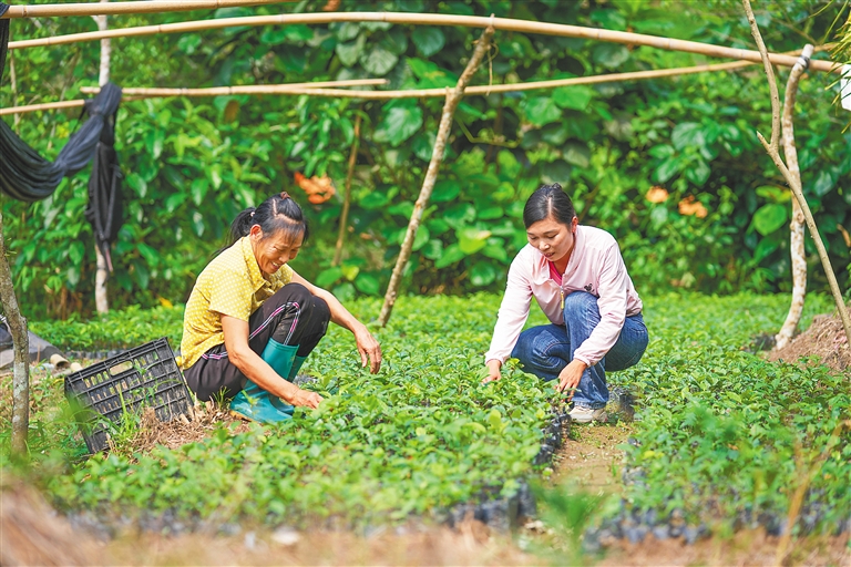 海南热带雨林国家公园鹦哥岭腹地,白沙黎族自治县南开乡革新村,一垄垄茶树绿意盎然。茶农符亚玉忙个不停,“这里一年四季都产茶,我家苗圃预计能带来收入4万余元。”