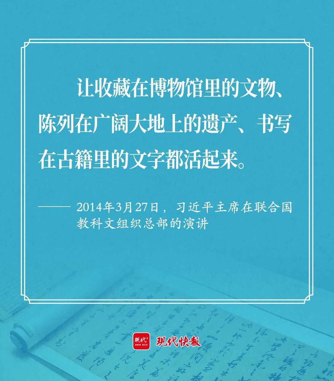 党的十八大以来,习近平总书记多次强调,要系统梳理传统文化资源,让收藏在深宫里的文物、陈列在广阔大地上的遗产、书写在古籍里的文字都活起来。