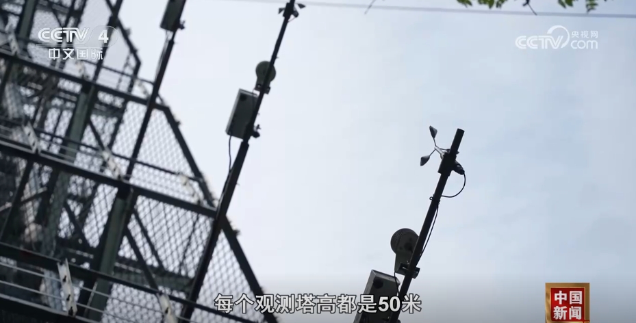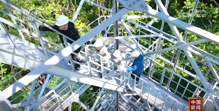 升降电梯是设备仪器的专属,科研人员每次的实地监测则要去徒手攀爬50米高的监测塔。清原森林属于典型的温带森林生态系统,是东北辽东地区重要珍稀濒危物种栖息地和重要生态屏障区,耸立在密林中的三座监测塔是科研人员的“千里眼”和“顺风耳”。