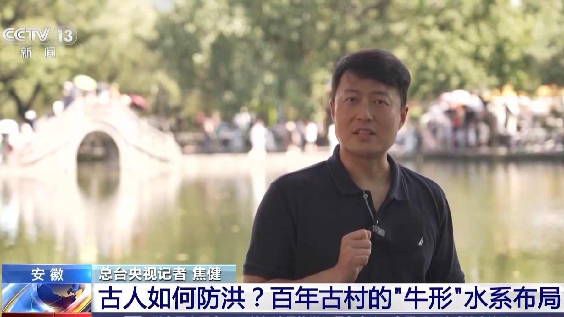 总台央视记者 焦健:南湖和月沼作为宏村水系的重要组成部分,被形象地称作牛肚和牛胃,它们就像两个大蓄水池,将村里的排水尽收其中,不但减轻了下游河道的压力,还能美化村里的环境以及灌溉农田。