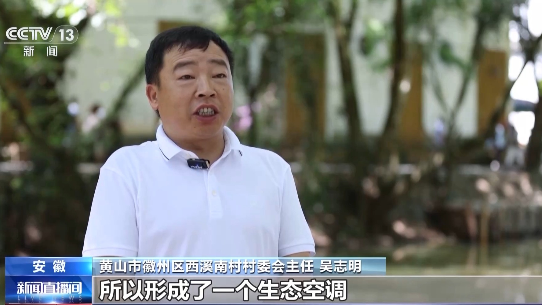 安徽省黄山市徽州区西溪南村村委会主任 吴志明:枫杨树长势很快,只要十五天左右就能成为一片绿色。夏天这个叶子可以遮阳,我们脚下的水可以把热量带走,所以形成了一个生态空调。