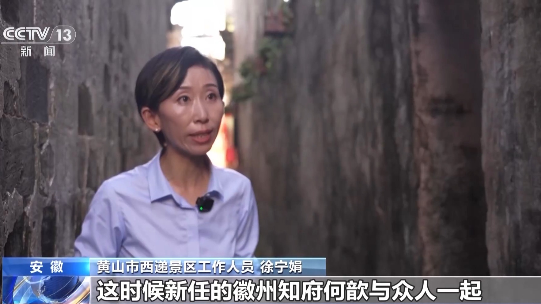 安徽省黄山市西递景区工作人员 徐宁娟:失火了,这时候新任的徽州知府何歆与众人一起赶到火灾现场,火苗往上一烧,一蹿就蹿到另外一家,一烧就连片。拥有高高门墙和山墙的人家,火苗蔓延速度会慢一些。何歆在任期间就不断地推广马头墙。