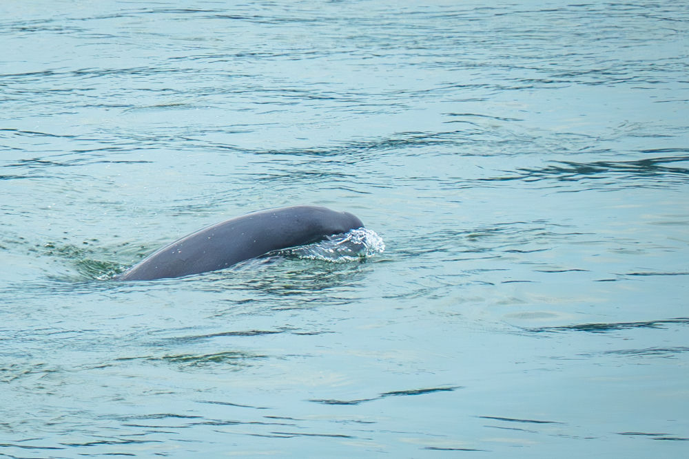 长江江豚在湖北省宜昌市葛洲坝下游水域逐浪嬉戏(2024年5月21日摄)。新华社记者 肖艺九 摄