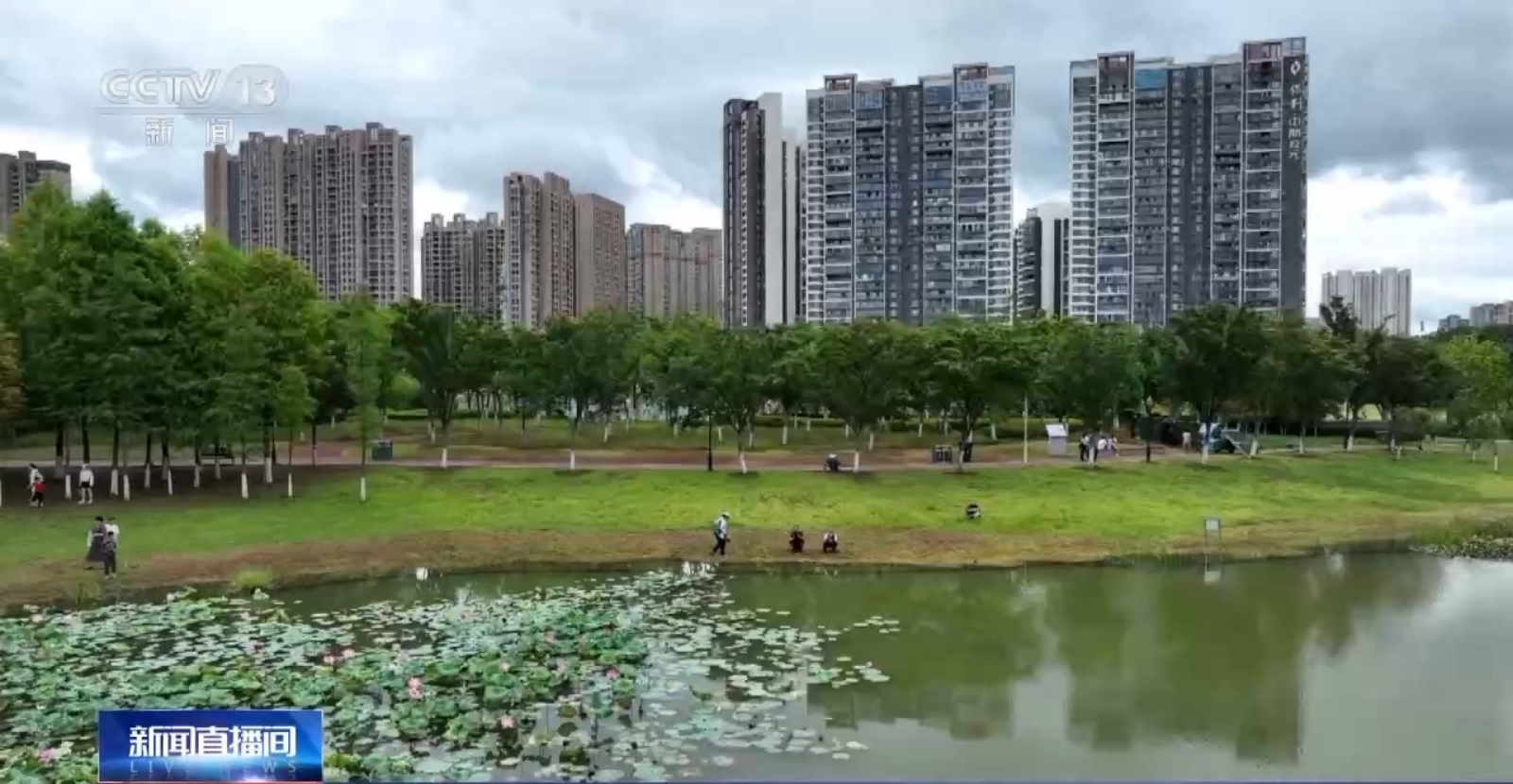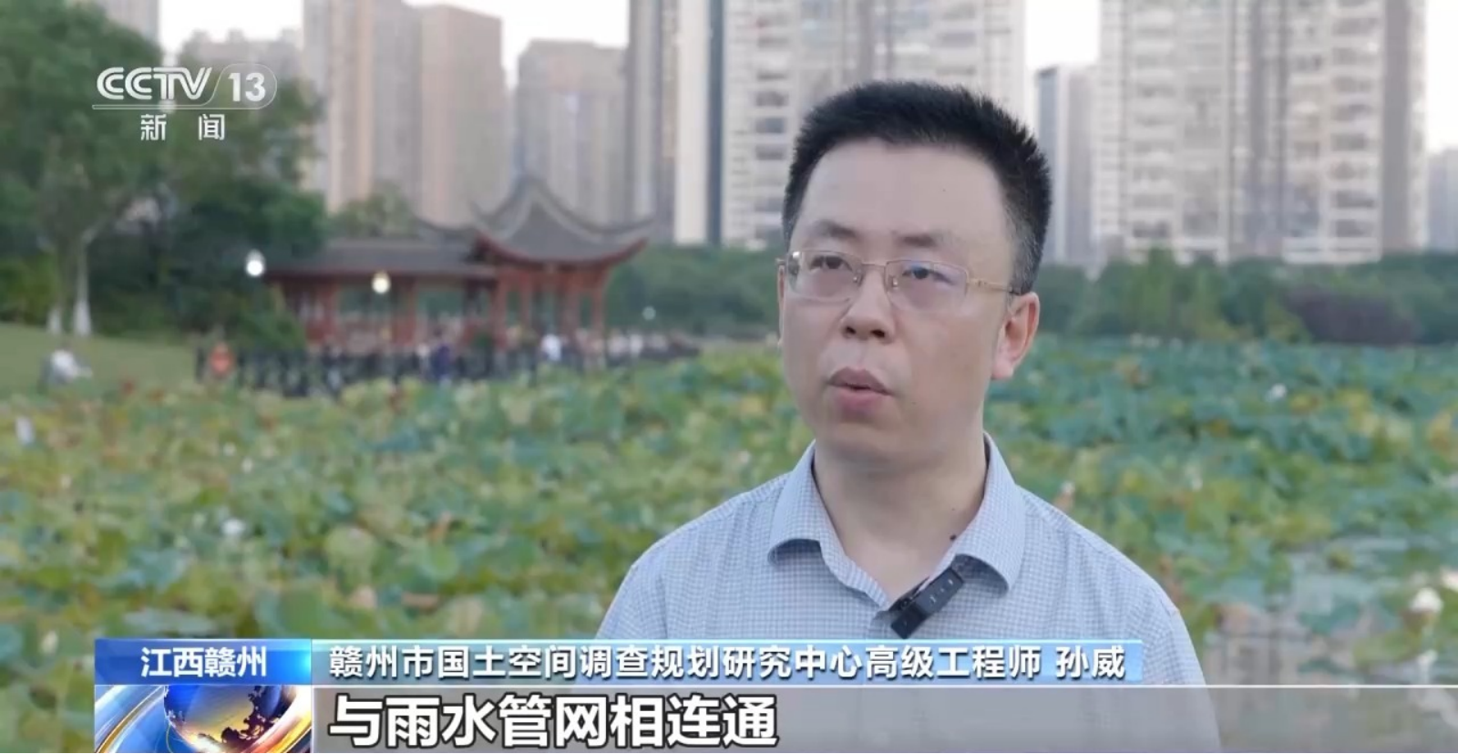 赣州市国土空间调查规划研究中心高级工程师 孙威:城市中央生态公园的水体与雨水管网相连通,就像福寿沟和各池塘相连接一样,增强了城市蓄洪排涝的功能。此外,湖区还种植了水生植物,比如说荷花、菖蒲、睡莲等,来提高公园水体水质。