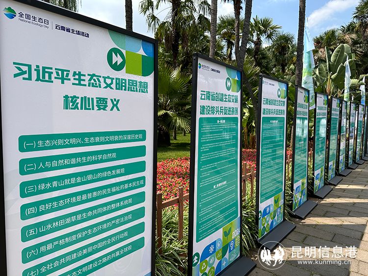 全国生态日云南省主场活动由云南省发展和改革委员会、昆明市人民政府主办,活动现场省发展改革委介绍云南省“十四五以来”生态文明建设工作成效,并发布云南省碳足迹核算重点产品目录清单;省生态环境厅发布污染防治攻坚战有关工作推进情况及成效;省教育厅发布云南省生态文明教育工作推进情况及成效;省交通运输厅发布绿美交通工作推进情况及成效;省农业农村厅发布水产绿色健康养殖“五大行动”工作推进情况及成效;省市场监管局发布《强化标准引领助推生态环境保护》;省林草局发布云南省林草生态保护发展工作推进情况及成效;省邮政管理局发布快递包装绿色转型工作推进情况及成效。活动还组织参观中科院昆明动物研究所和翠湖公园共同打造的生态文明展厅。