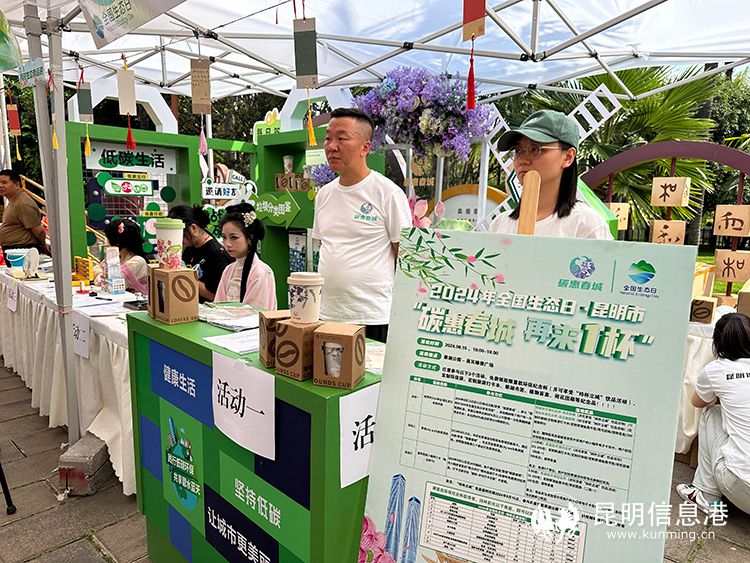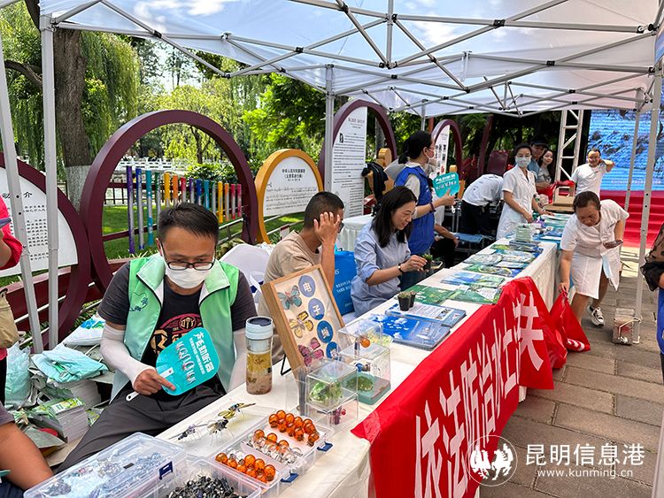 活动现场设置了昆明市生态文明建设成效展区和公益互动区域,开展“碳惠春城”翠湖 city walk集章活动线,按照路线集满三个章后,返回翠湖活动现场获得相应奖品。