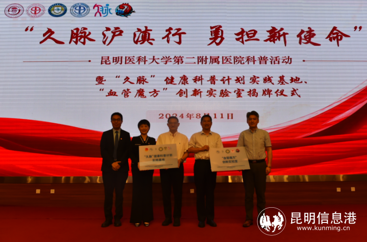 活动现场,曾勇院长、张立亚副书记、王丹茹副书记、刘晓兵主任、崔超毅副院长共同为“久脉”健康科普计划实践基地与“血管魔方”创新实验室揭牌,标志着双方合作进入新的阶段。
