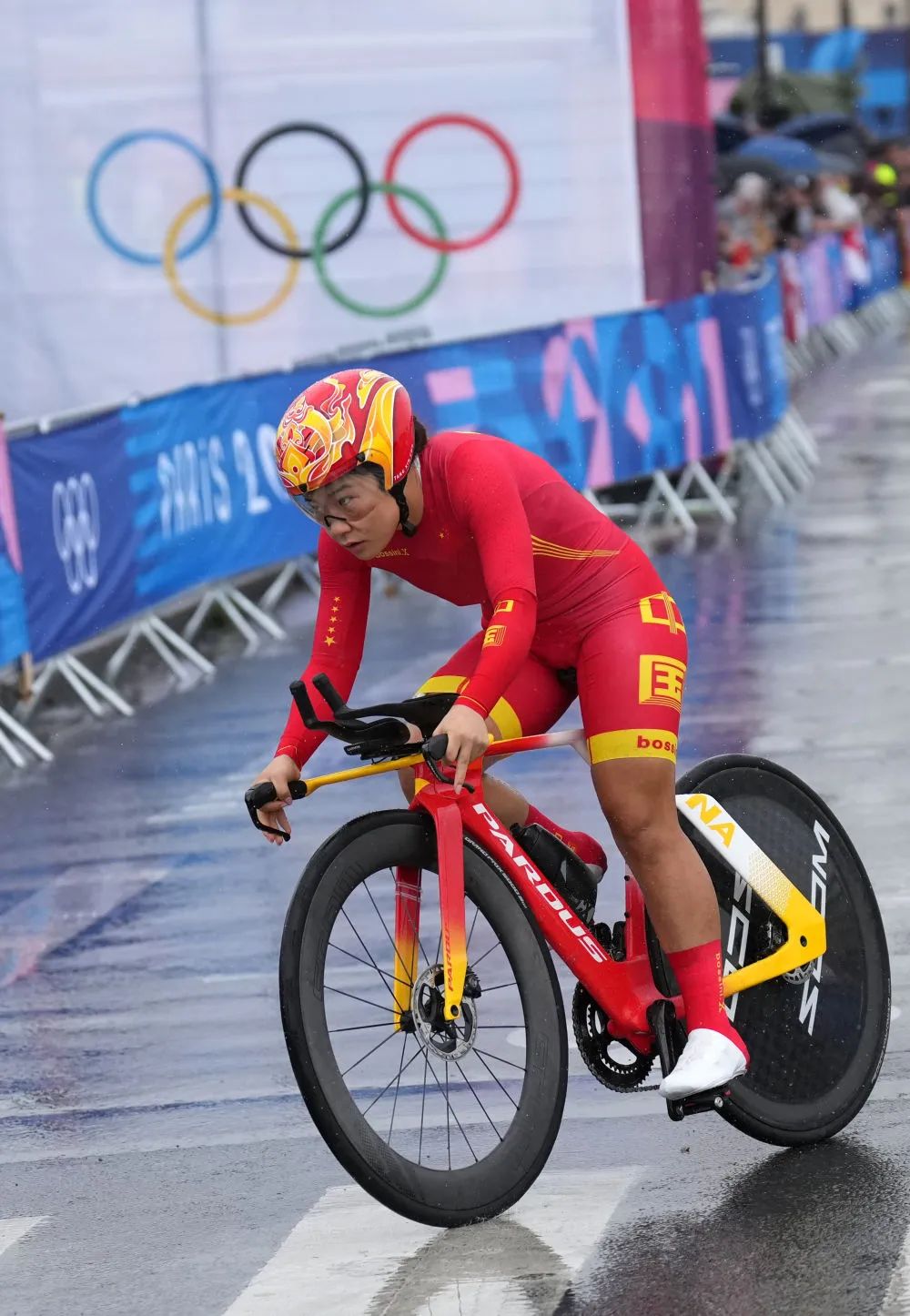 7月27日,23岁的唐欣率先出战公路自行车个人女子计时赛。作为赛场上唯一的中国运动员,即使途中遭遇摔车,她也不放弃、不退缩,最终以第32名的成绩完成比赛。唐欣是1996年亚特兰大奥运会设立公路个人计时赛项目后第三位参加该项比赛的中国运动员,也是首位在海外奥运会参加公路个人计时赛的中国运动员。