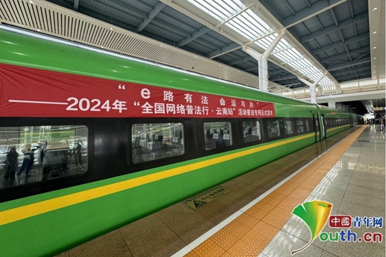 作为2024年“全国网络普法行·云南站”活动的亮点之一,以“e路有法 命运与共”为主题,在中老铁路昆明至磨憨段之间打造网络普法特色主题专列,是一次“走新”又“走心”的尝试,通过线上线下相结合的宣传场景,营造浓厚的网络普法氛围。