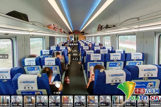 此外,普法专列还采用沉浸式VR的方式创新网络普法新模式。手机进入该模式,只需在手机屏幕上点击车厢两侧玻璃,就可以查看沿线站点的普法宣传打卡点,让网络普法走“新”又走“心”。