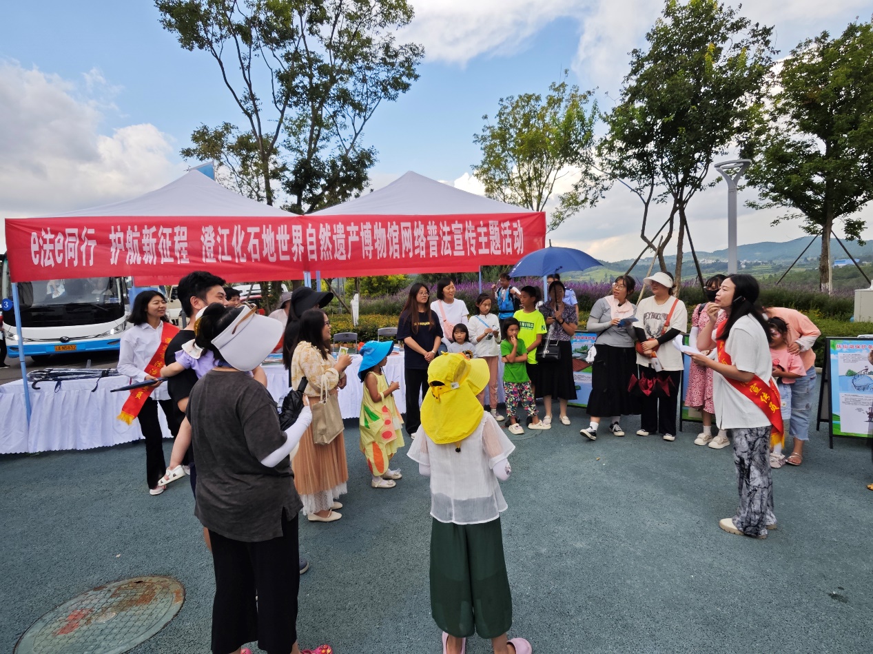 8月22日下午,“全国网络普法行·云南站”活动媒体团来到云南省网络普法特色基地澄江化石博物馆,现场正在开展一场别开生面的网络普法宣传活动。