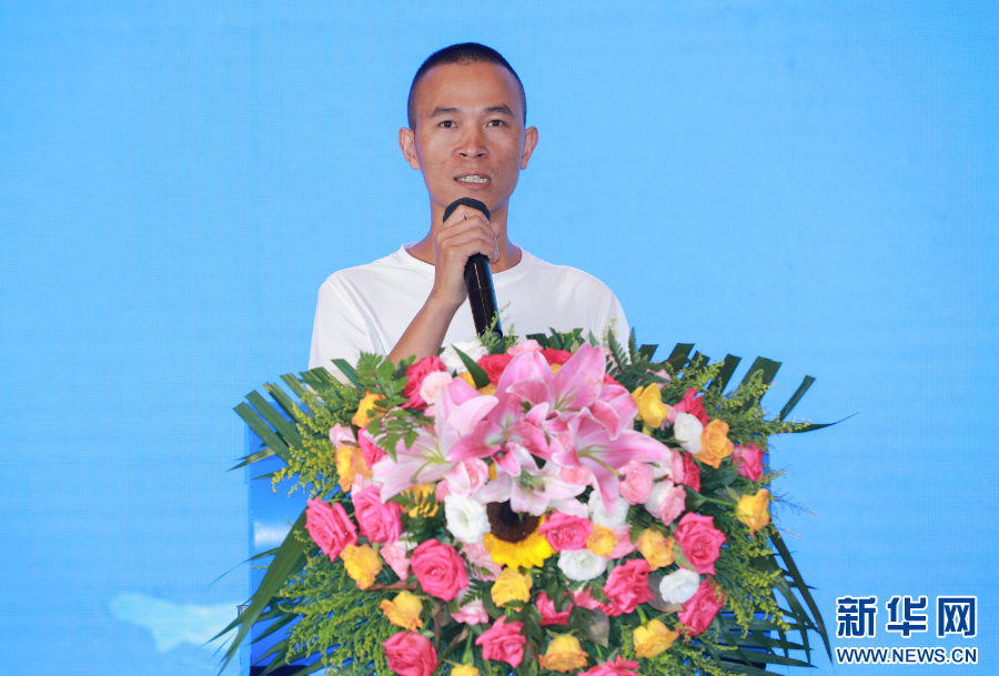 玉喃溜在分享普法经验和感悟(摄于8月22日)。新华网发(供图)