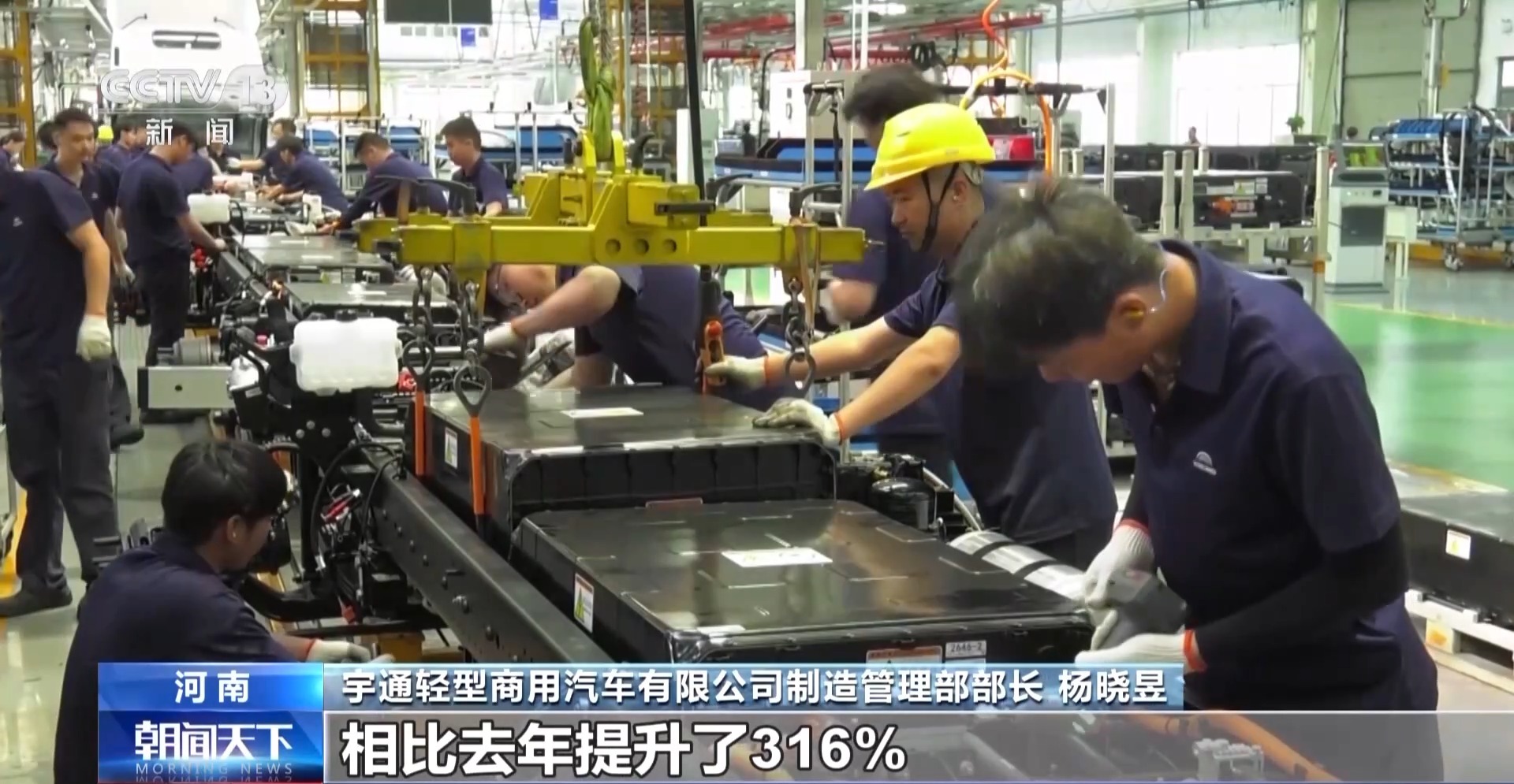宇通轻型商用汽车有限公司制造管理部部长 杨晓昱:今年以来市场火爆,我们车间的产量也迎来了爆发式增长,相比去年提升了316%。生产线的订单已经安排到了11月份。