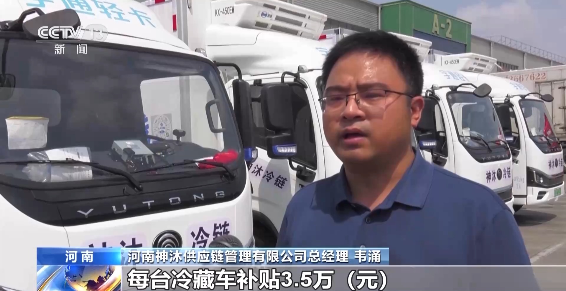 河南神沐供应链管理有限公司总经理 韦涌:每台冷藏车补贴3.5万元,进一步降低了我们的购车成本,下半年公司还有将近150台的冷藏车购买计划。