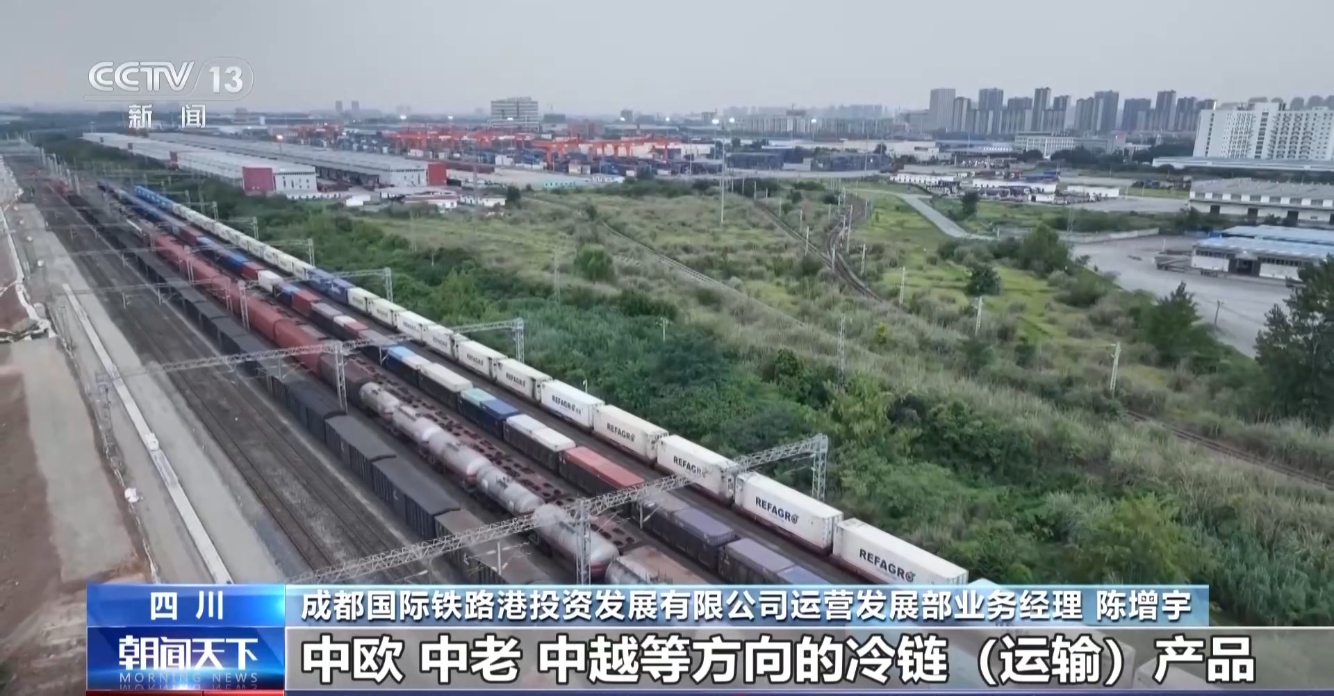 成都国际铁路港投资发展有限公司运营发展部业务经理 陈增宇:自去年5月进口冷链业务重启,成都国际铁路港先后开发了中欧、中老、中越等方向冷链运输产品。
