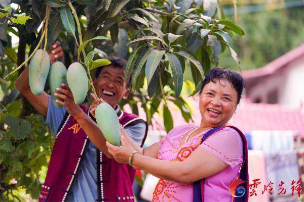 沧源县勐来村村民在庭院内采摘芒果。郝亚鑫 摄(图源:云岭先锋)