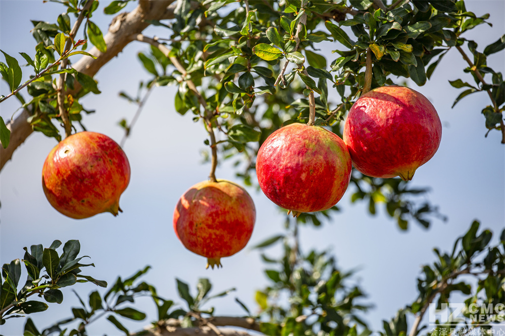 蓝天白云下,徜徉在石榴园里,呼吸着新鲜的空气,心情一片愉悦。颜德洲介绍:“今年,我种了100多亩石榴树,发基村太阳光照条件充足、温度适宜,适合果树种植,除了种植石榴树外,我还种植了桃子,橘子等水果。”