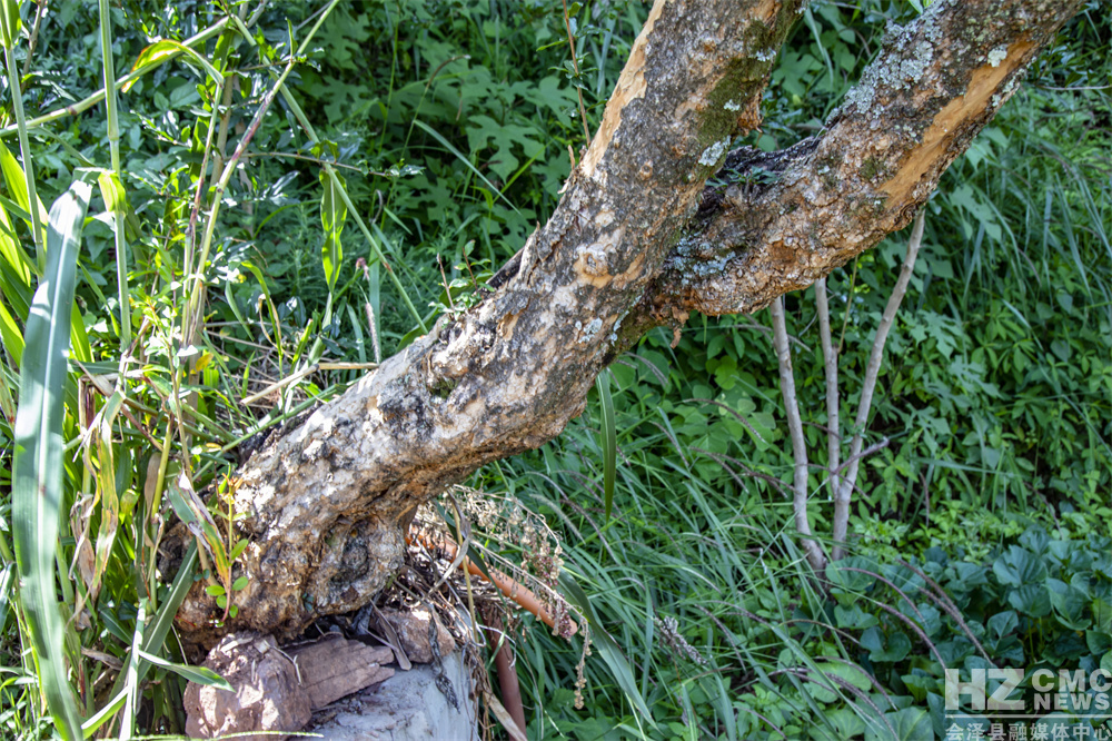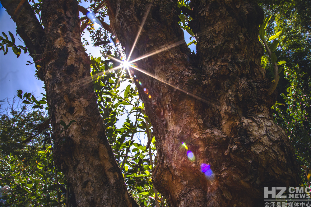 会泽盐水有300多年的种植历史,那么,现存最古老的盐水石榴树有多少岁呢?带着这样的疑问,颜德洲带领我们来到了一个距发基卡村委办公房500米左右的小沟里。在两棵老石榴树下,颜德洲停下脚步。“这两棵老石榴树自我爷爷那一辈就开始种下了,据今已有100多年的历史,我们叫‘糯石榴’树,两棵石榴树所结的果实具有皮薄肉大籽小的特点。”颜德洲介绍道。