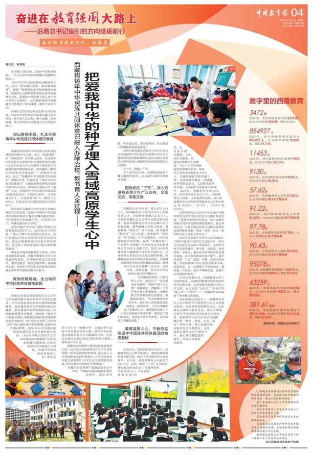 今天,“奋进在教育强国大路上——沿着总书记指引的方向砥砺前行”专栏之“各地教育成就巡礼”系列,通过一个视频、一组大图、一篇报道介绍西藏如何将铸牢中华民族共同体意识融入办学治校、教书育人全过程——