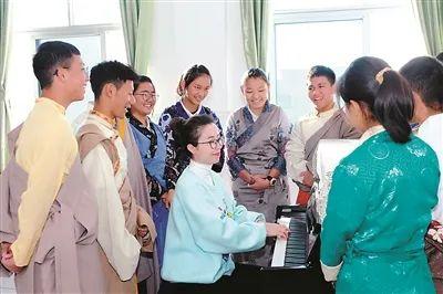 广东省佛山市江义中学西藏班师生音乐课场景。