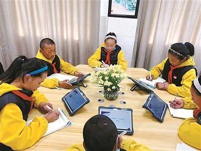 拉萨市墨竹工卡县尼玛江热乡小学学生在智慧教室上课。