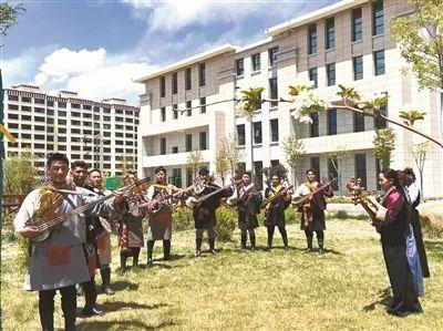拉萨师范高等专科学校学生在校园演奏民乐。
