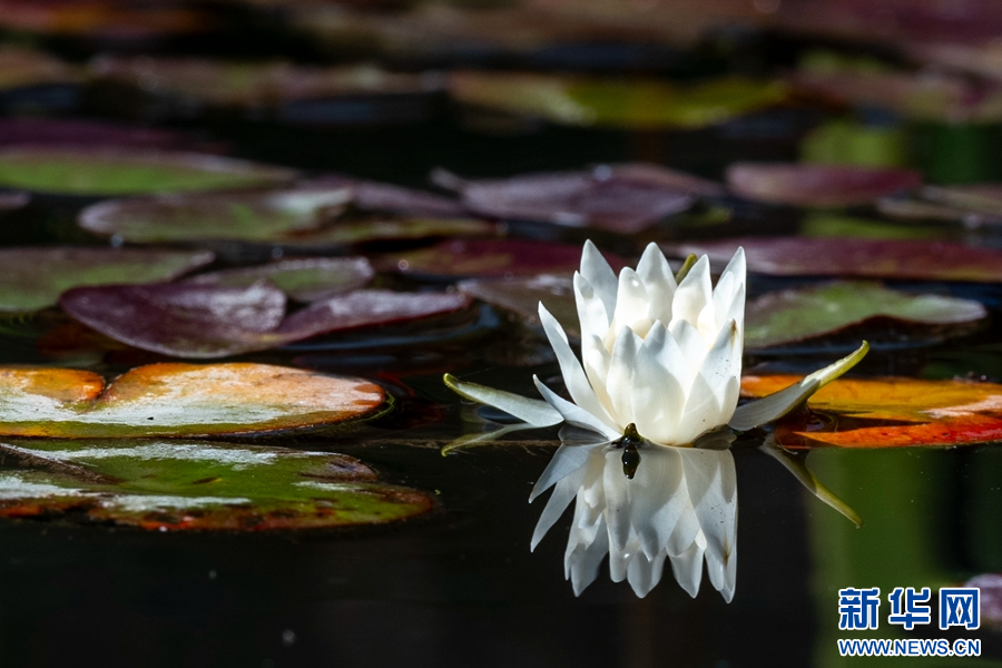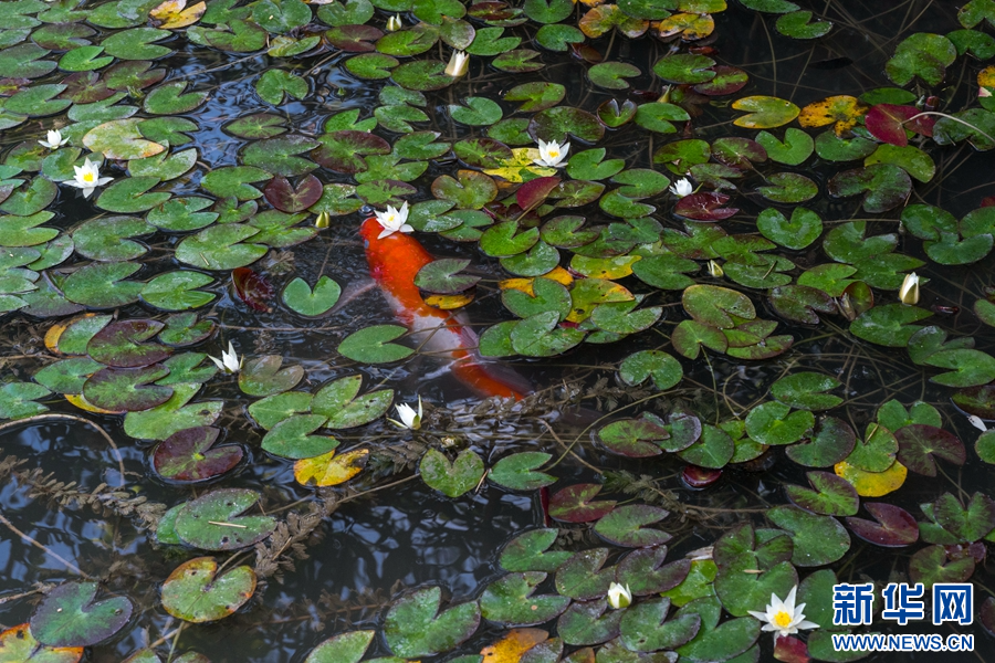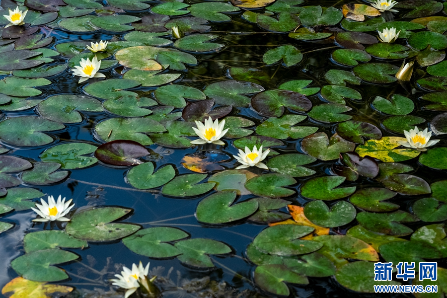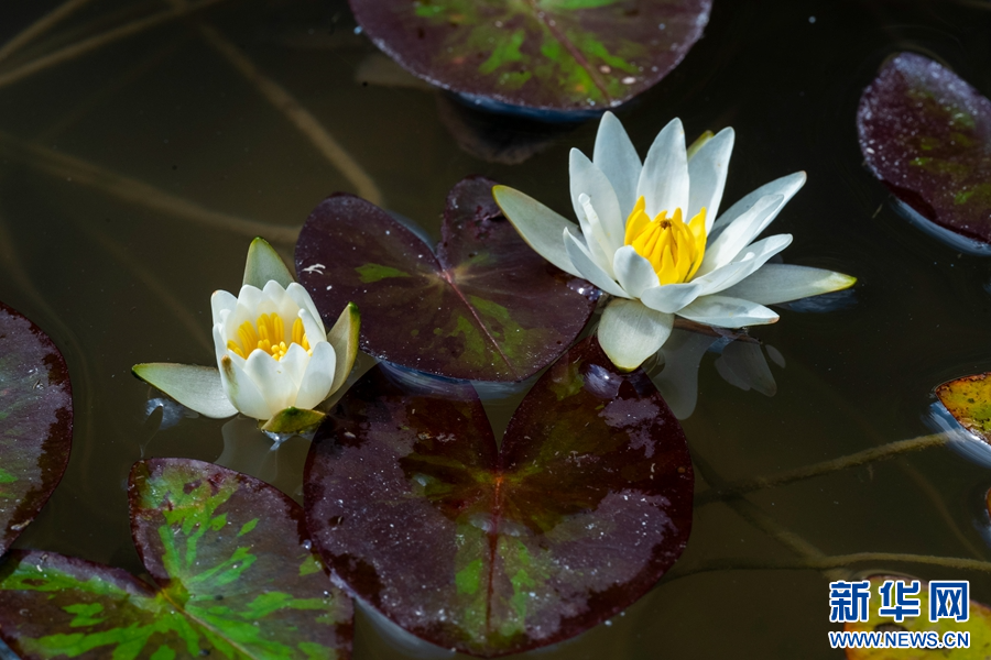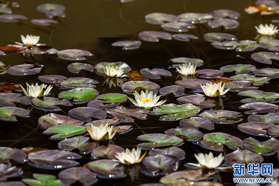 在洱源县一处农家小池里拍摄到的茈碧花(摄于8月21日)。新华网发(罗新才 摄)