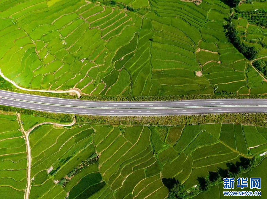 航拍稻田风光(8月22日摄)。新华网发(尹以沛 摄)