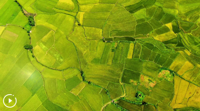 Captivating aerial views of harvesting rice fields in Yingjiang