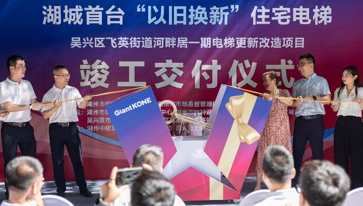 7月30日,浙江省湖州市首台“以旧换新”住宅电梯交付业主使用