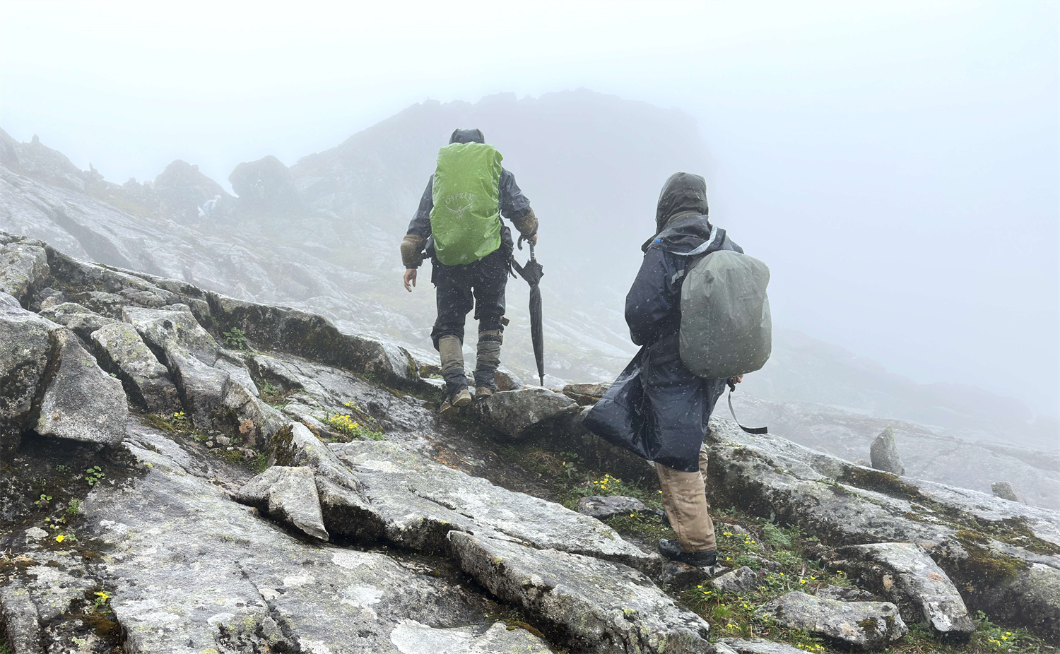 和同伴在寻找绿绒蒿途中翻越海拔4152米的丫口 王斌供图