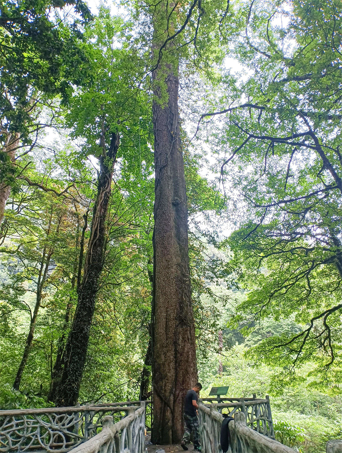 2021年8月,泸水管护分局对姚家坪森林步道进行提升改造时,在2400米海拔带的步道旁发现一株非常高大的树,但是大家都不知道这是什么树。“做自然保护工作,我觉得首先要有一颗好奇的心,对什么东西都要特别好奇,要感兴趣,想去了解它,它为什么会长那么高?同时,要千方百计把标本采集到。”王斌说。当时由于树太高,无法采到树叶标本,王斌和同事们就用弹弓打了几片树叶送到中国科学院昆明植物研究所(以下简称“昆明植物研究所”),经专家鉴定,这是云南新分布种、极危物种小果榆。通过监测和记录,确定高黎贡山有小果榆物种分布,在姚家坪发现的这棵是最大的一株,树高60米,胸径182.6厘米、胸围575厘米,树龄264年。
