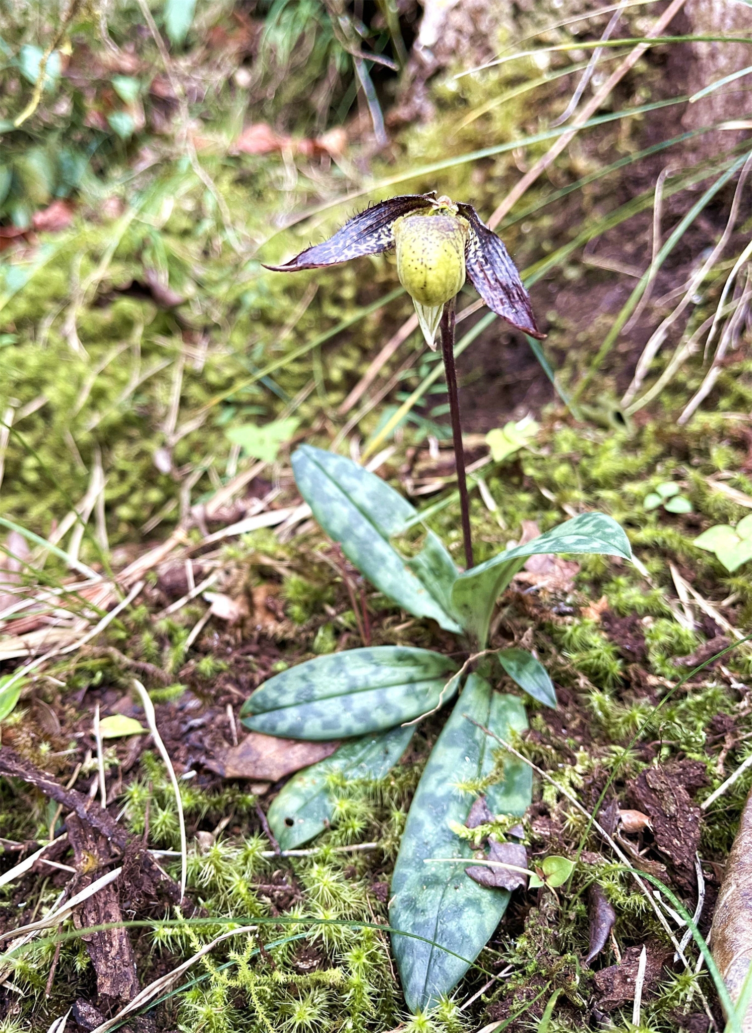 2023年4月,在一次寻找目标物种丽江杓兰和离萼杓兰的过程中,王斌无意中拍到了一朵不知名的兰花,他把兰花的照片发给昆明植物研究所的兰花研究专家,经专家鉴定后确认,这是国家一级保护植物彩云兜兰,属泸水新分布种。