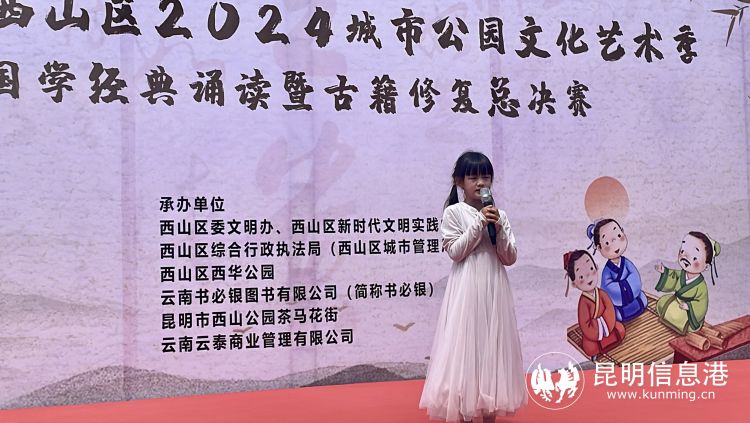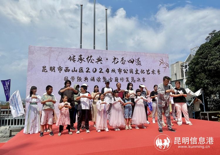 昆明信息港讯 记者段佳琪 8月31日,昆明市西山区2024城市公园文化艺术季“国学经典诵读暨古籍修复体验赛”决赛在西山公园茶马花街举行。