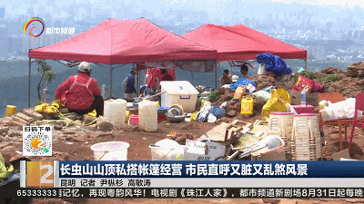 工作人员表示,在山顶搭棚经营的人员构成复杂。再加上长虫山涉及多个街道,管理难度较大,城管队员只能定期上山进行执法劝阻。此外,长虫山正在进行绿道及服务配套设施建设施工,近期施工工作即将进行到山顶,届时也会阻断山顶摆摊的行为。(来源:YNTV2都市条形码 记者尹枞杉 高敏涛)