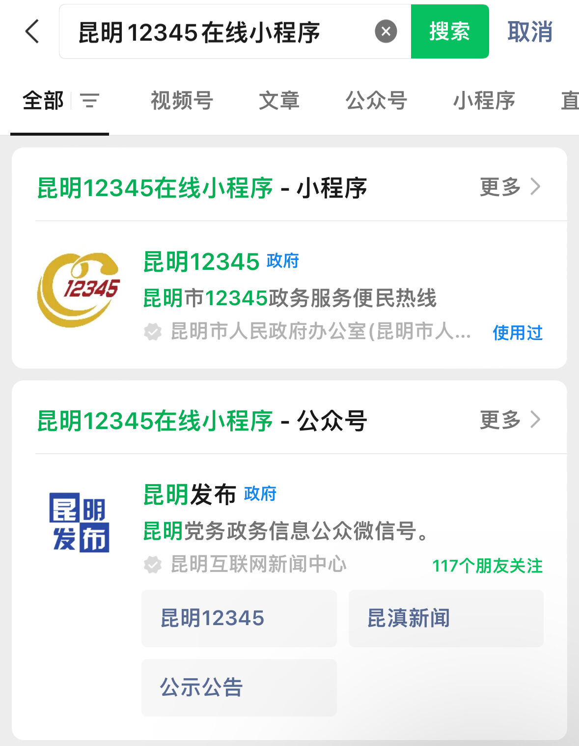 “昆明12345”小程序进入方式↓↓↓