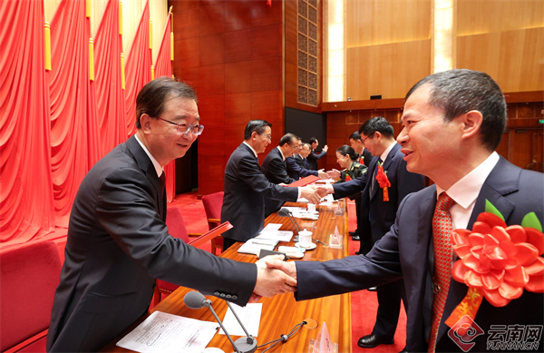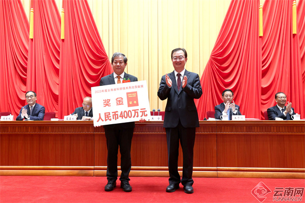 会上,副省长王正英宣读《云南省人民政府关于2023年度科学技术奖励的决定》,授予王华云南省科学技术杰出贡献奖;授予云南省自然科学奖一等奖7项、二等奖17项、三等奖18项;授予云南省技术发明奖一等奖4项、二等奖4项、三等奖5项;授予云南省科学技术进步奖特等奖3项、一等奖14项、二等奖39项、三等奖85项。