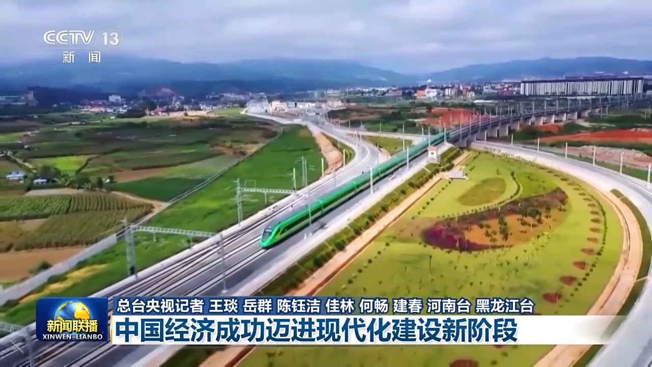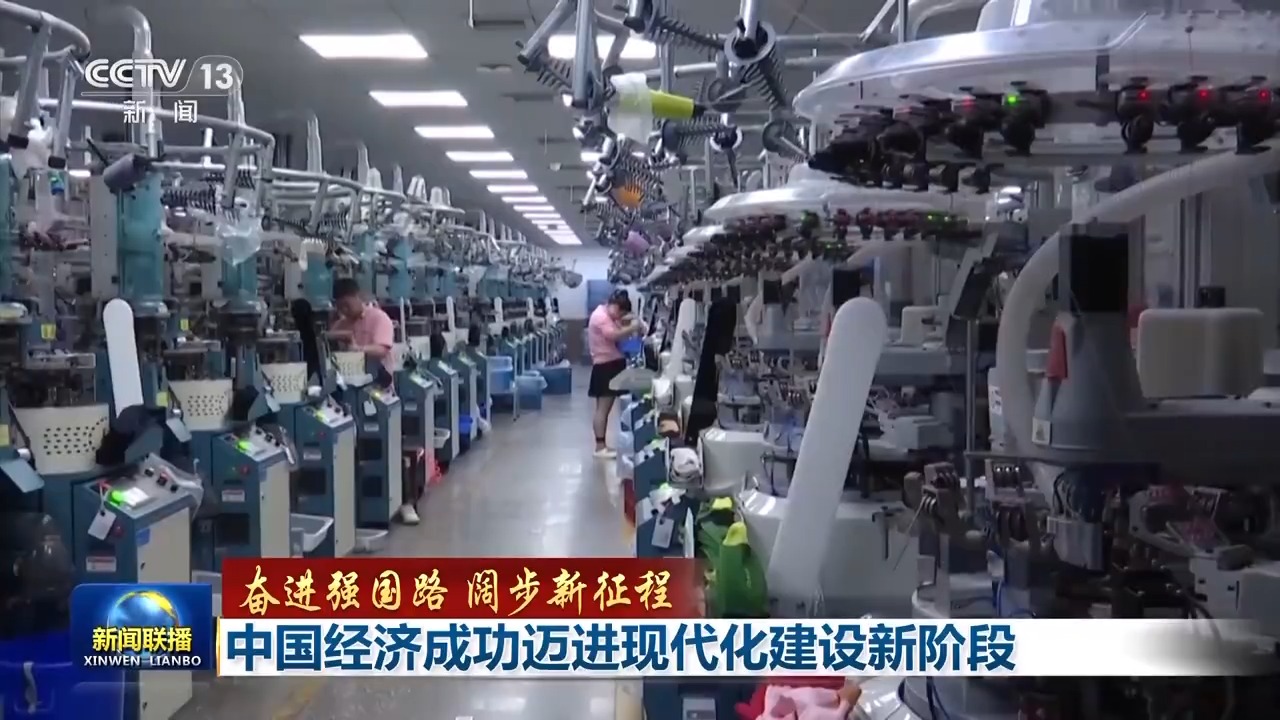 今年是中华人民共和国成立75周年。75载风雨兼程,75载峥嵘岁月,中国共产党领导下的新中国由一穷二白到全面小康,创造了世所罕见的经济快速发展奇迹和社会长期稳定奇迹。党的十八大以来,以习近平同志为核心的党中央团结带领全国各族人民接续奋斗、砥砺前行,成功推进和拓展了中国式现代化,中华民族迎来了从站起来、富起来到强起来的伟大飞跃,中华民族伟大复兴进入了不可逆转的历史进程。《新闻联播》今天推出系列报道【奋进强国路 阔步新征程】,首先来看《中国经济成功迈进现代化建设新阶段》。