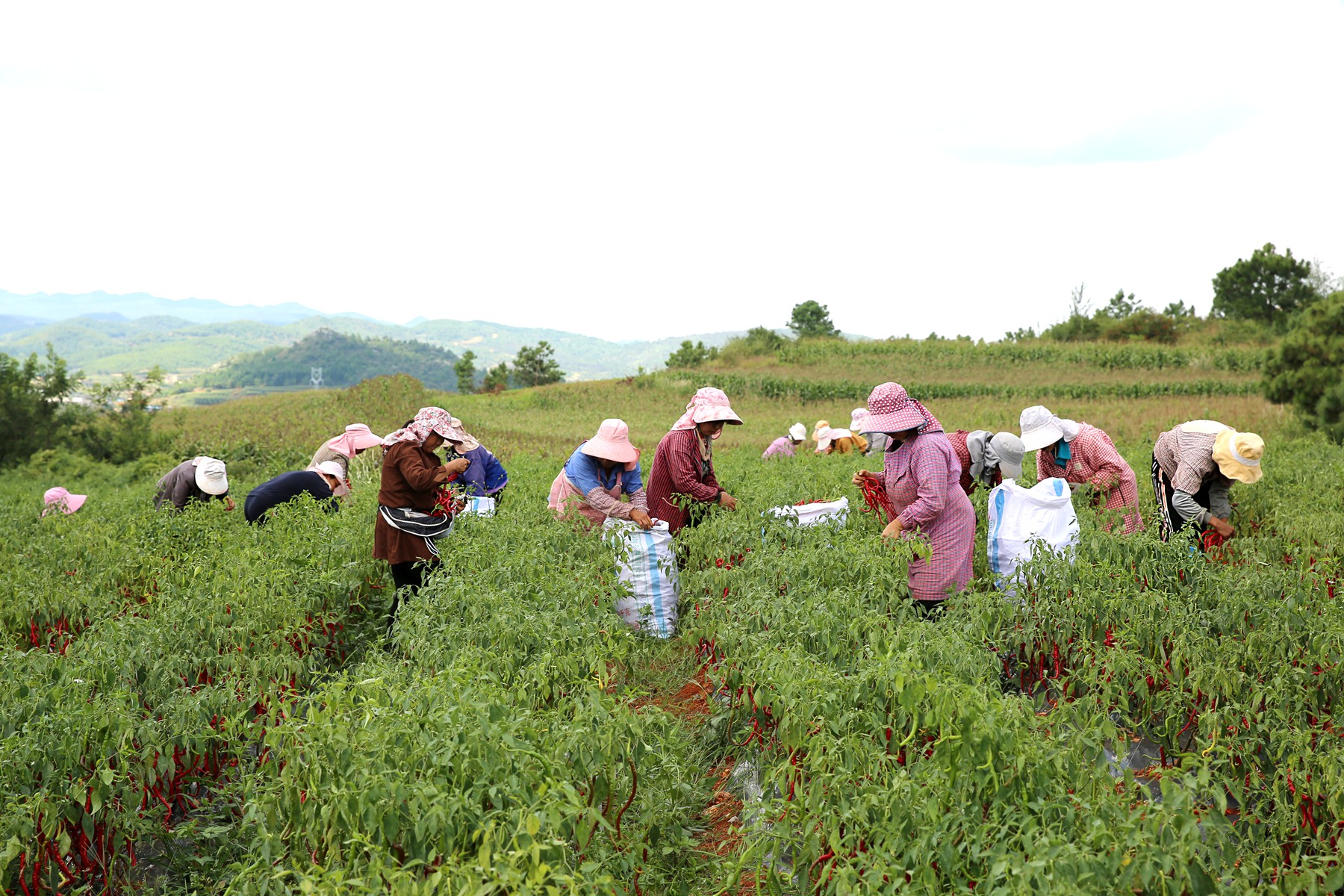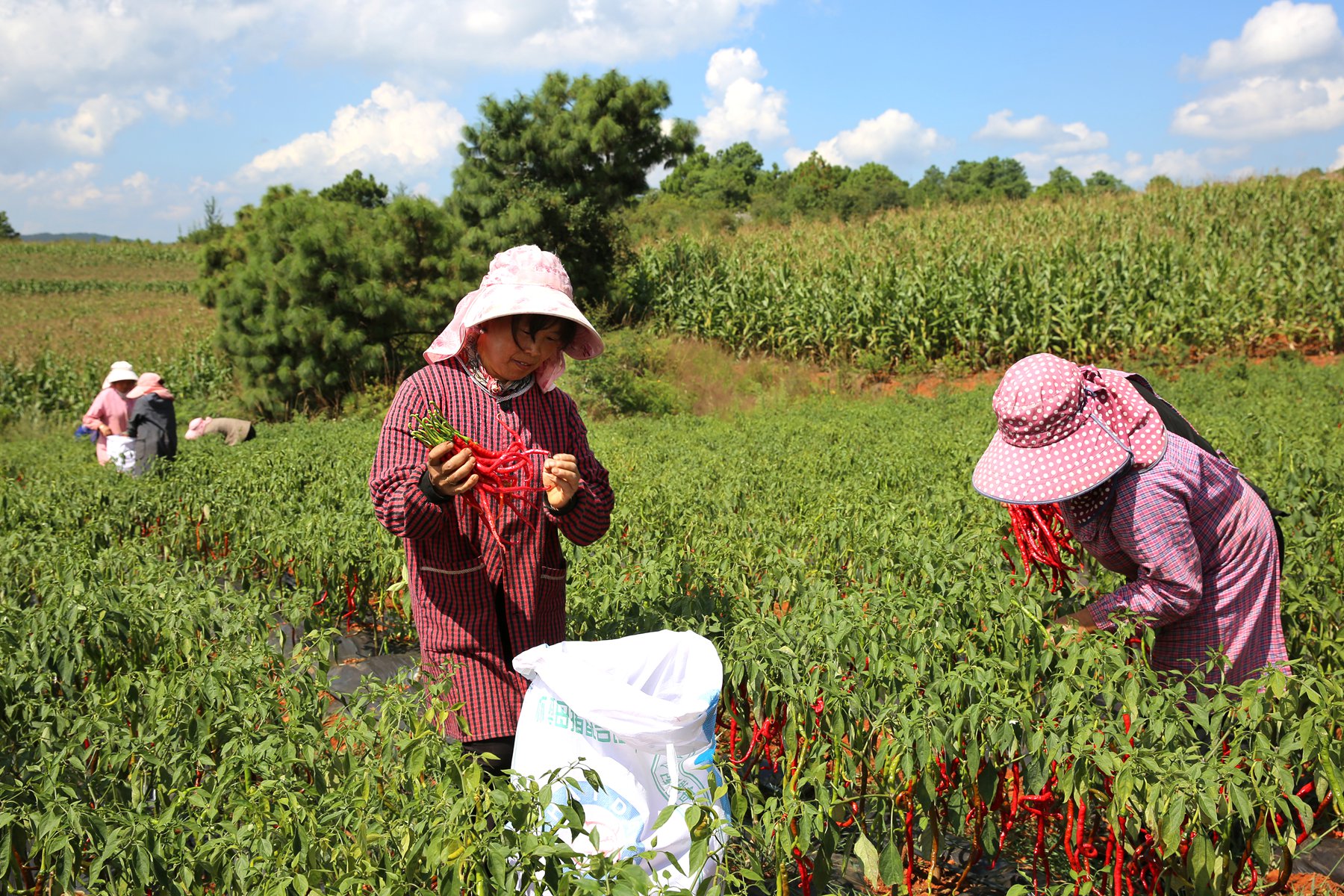 “八月下旬,辣椒进入采收期,我们基地每天都有40多人在此采收辣椒,每天可采摘辣椒约6吨,预计要采到11月下旬,每人每天100元,我今年采摘辣椒预计能收入5000余元。”在白龙洞辣椒种植基地参与采收的村民李桃介绍。