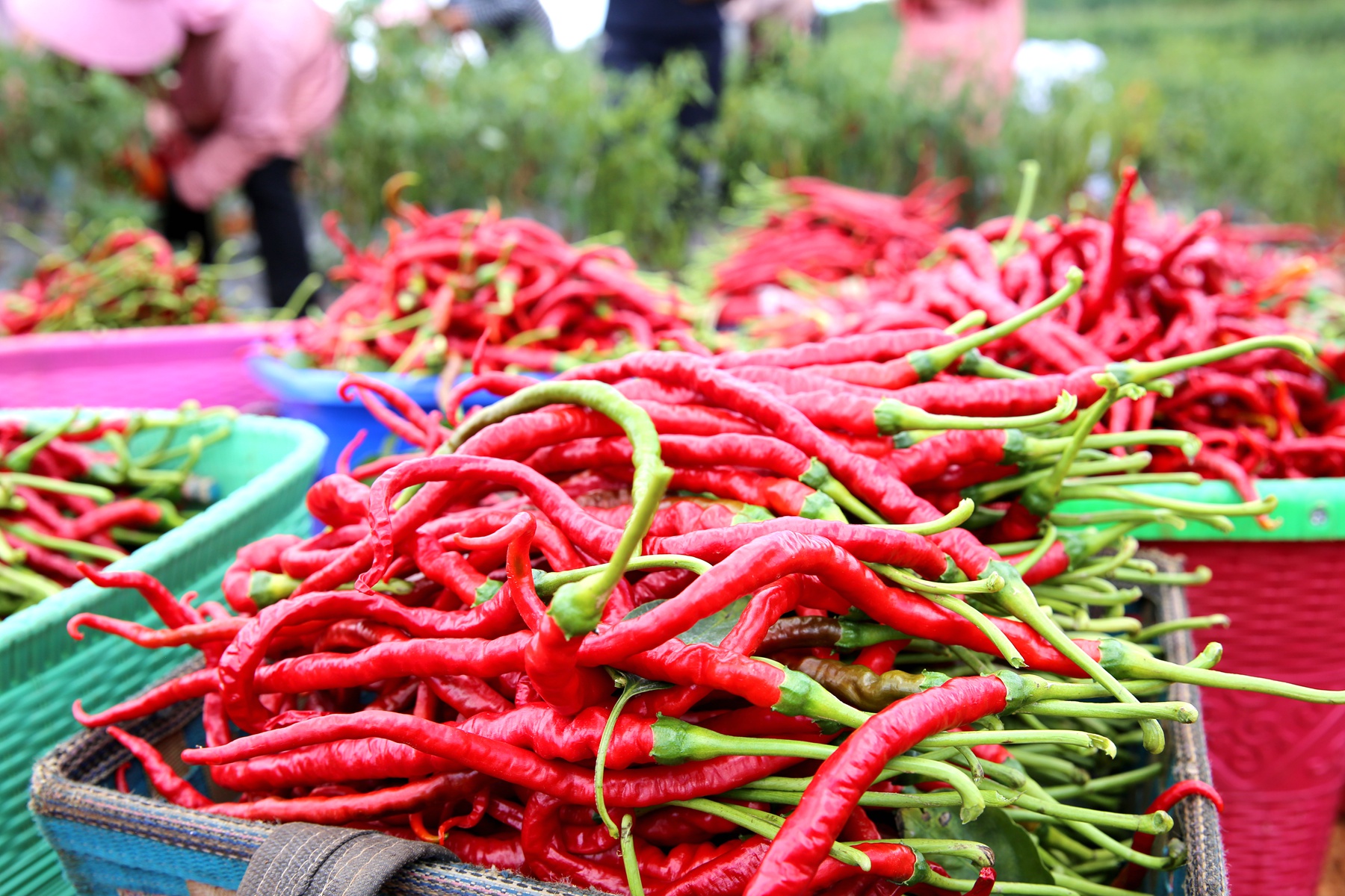 辣椒的丰收不仅让种植户的腰包鼓起来,还带动了周边村民的就业增收,在辣椒采收期间,采摘、分拣、打包、装箱各个环节都需要大量用工,该镇每天有上百名村民在各辣椒种植基地务工,每天实现务工收入1.5万元。